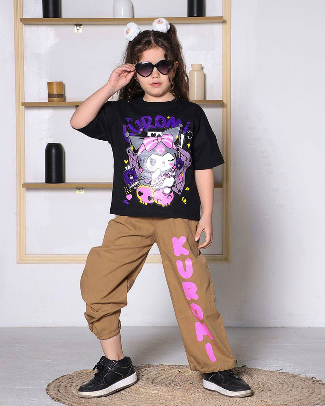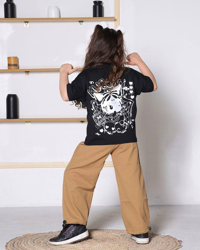 تیشرت دورو چاپ کرومی و شلوار بگ کتان گرم بالا بدون پرزدهی و رنگ دهی