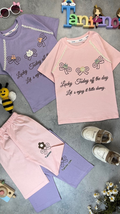 تیشرت شلوارک دخترانه راحتی مناسب ۴ الی ۹ سال