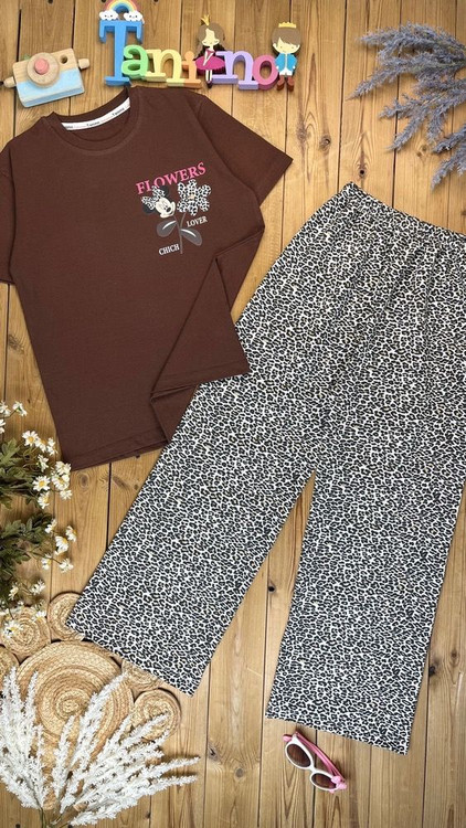 تیشرت شلوارک دخترانه طرح میکی پلنگی مناسب ۲ الی ۵ سال